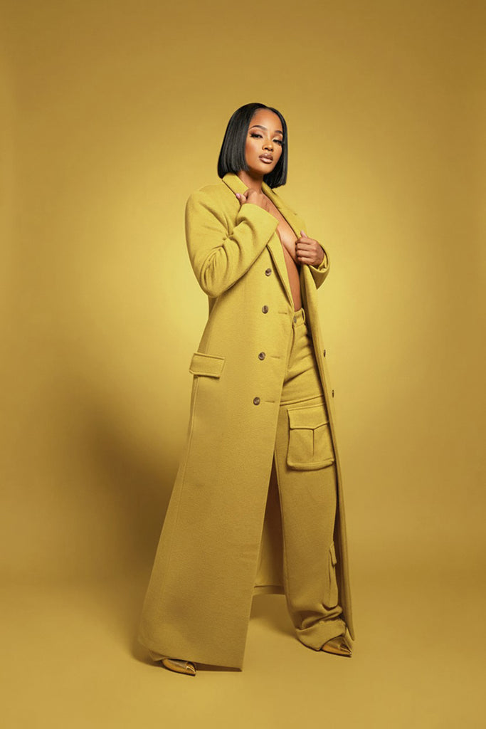 PLAYA TRENCH COAT IN FAUX DENIM BLUE